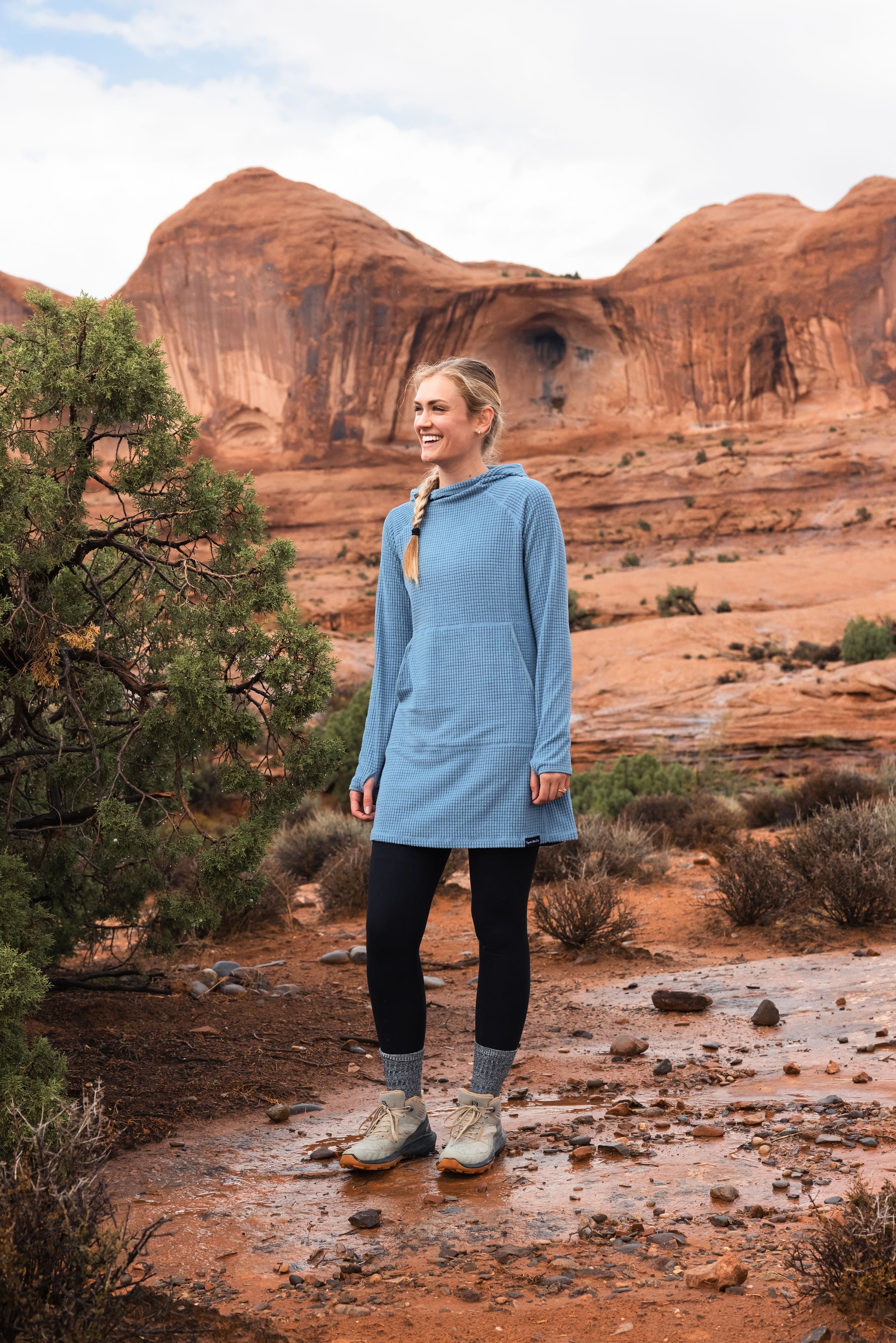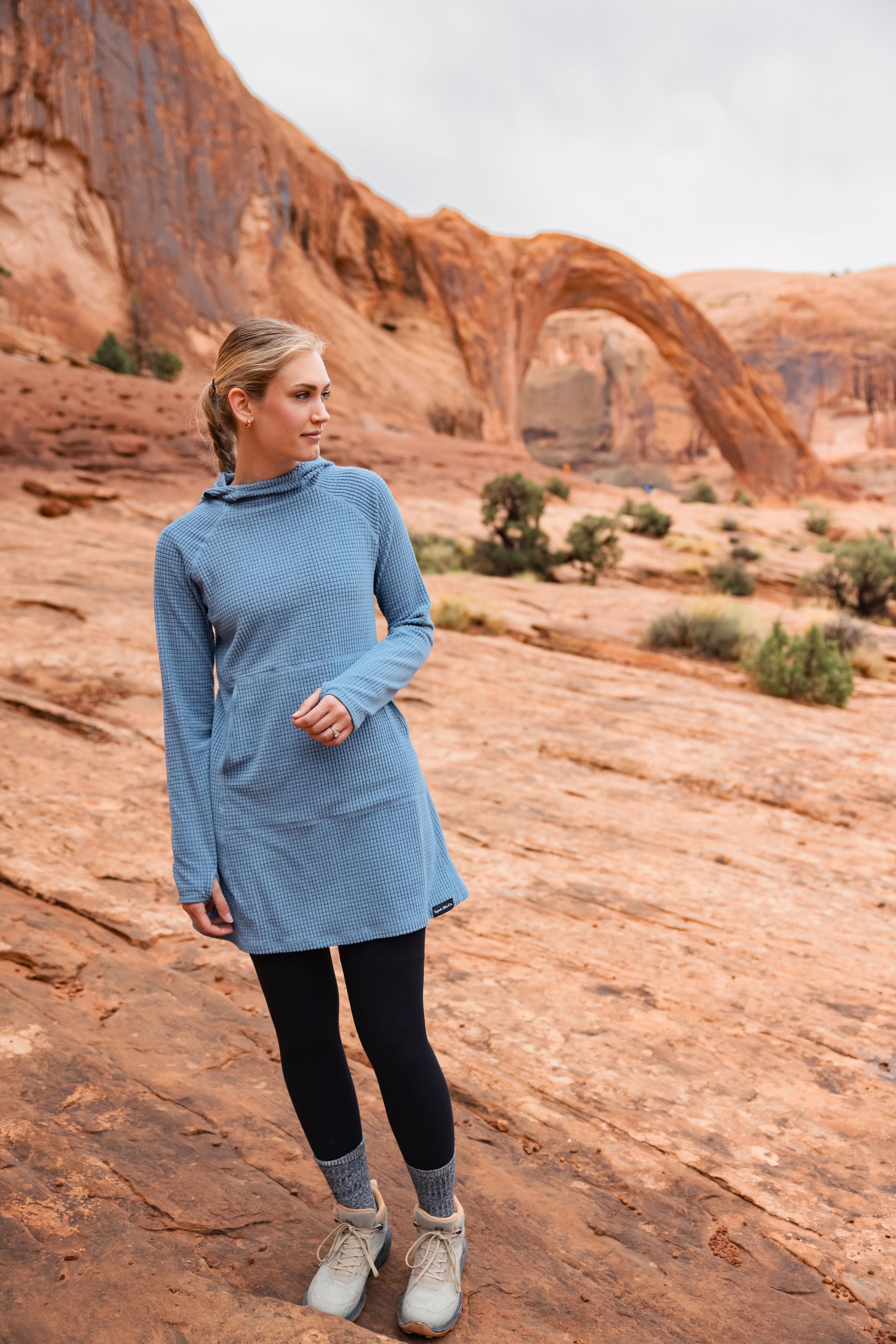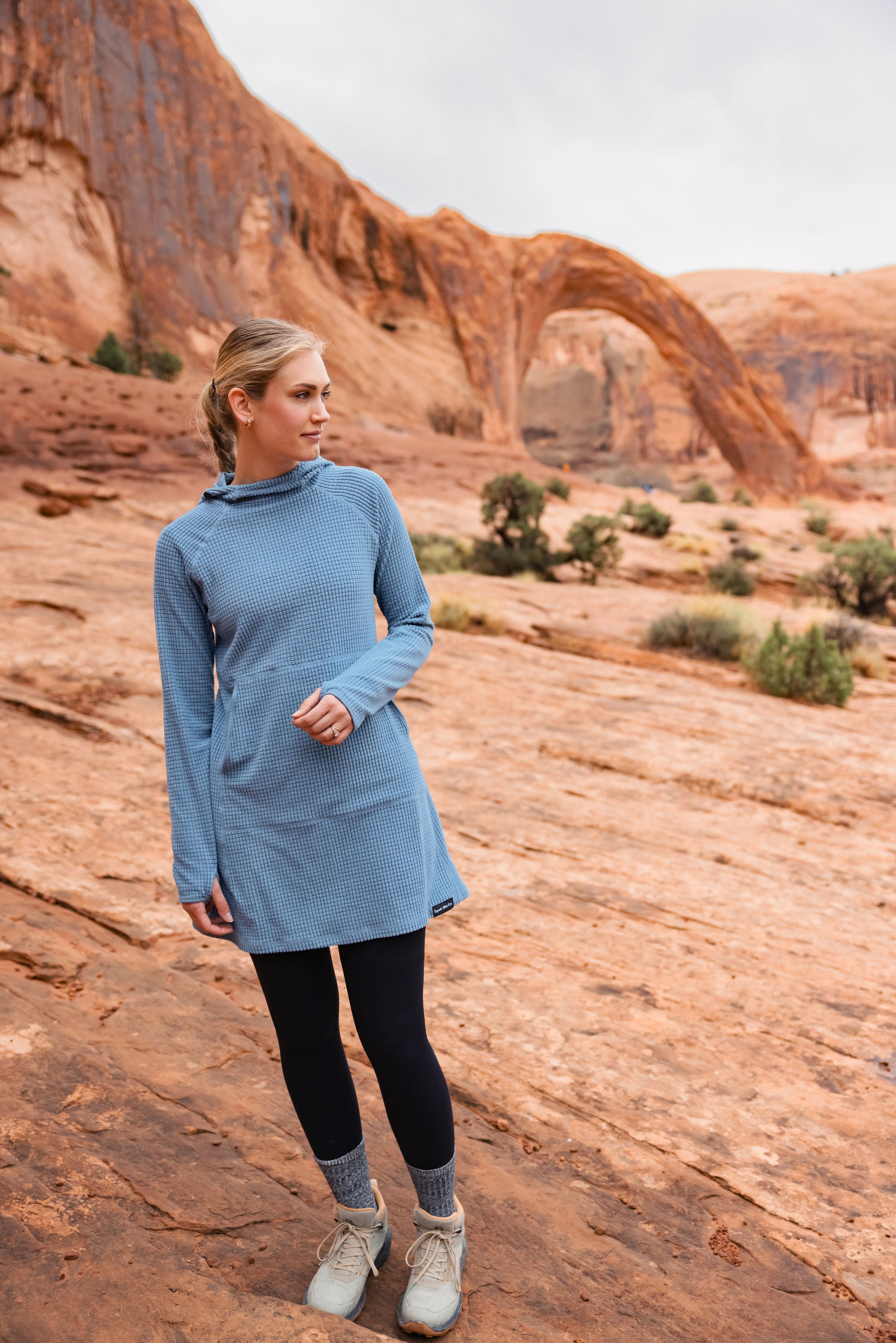 I wore it on our short hike to snow-covered hot springs, to and from the ski resort, and for everyday adventures. The Squak dress quickly became a staple, especially when I wanted to hide my new pregnancy bump. Ladies, I promise you will love this dress as much as I do.
